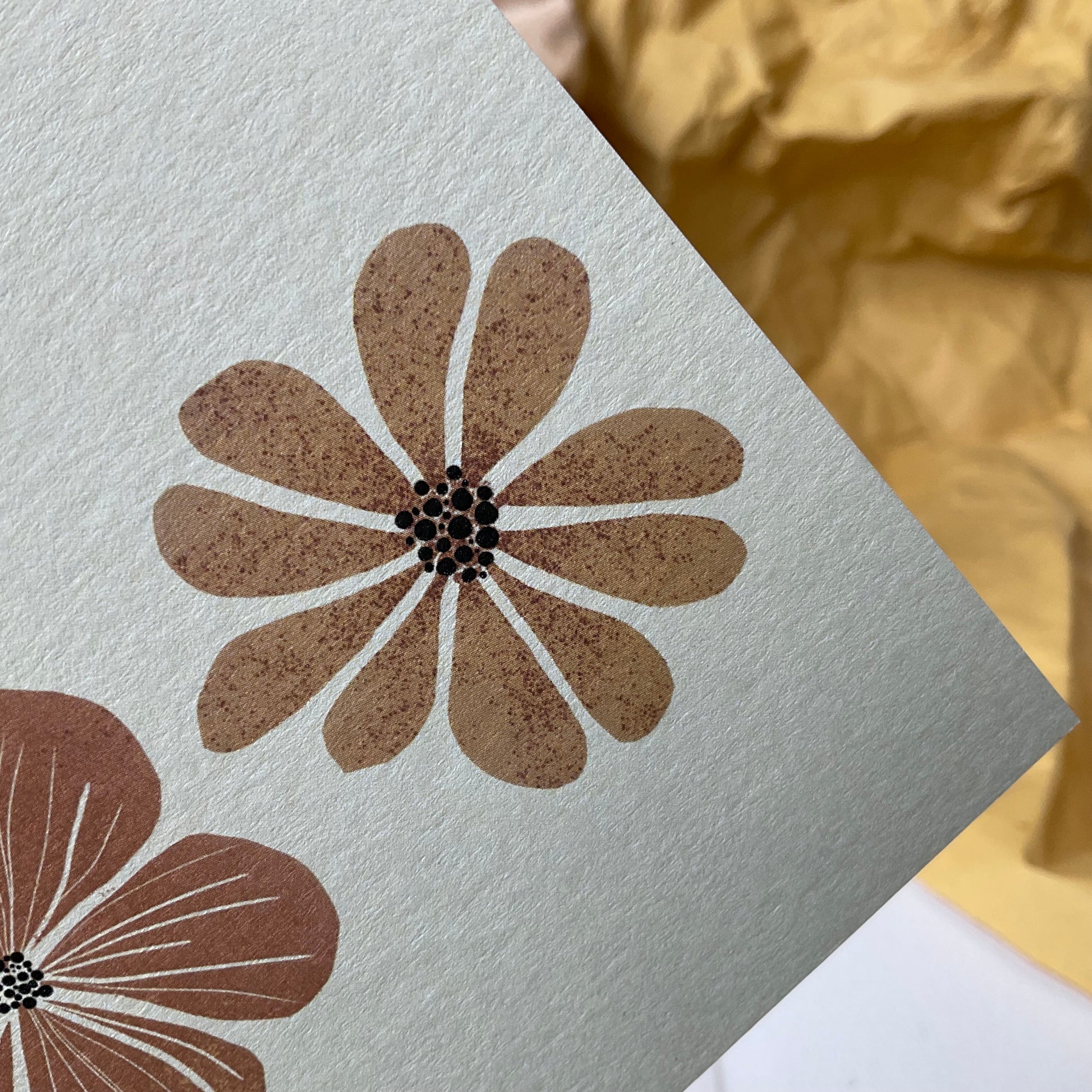 Een postkaart met kraft enveloppe. Bloemen zijn altijd een goed idee. 3 verschillende bloemen uit mijn verbeelding. De woorden die je aan de achterkant schrijft, zijn veel belangrijker. 💌