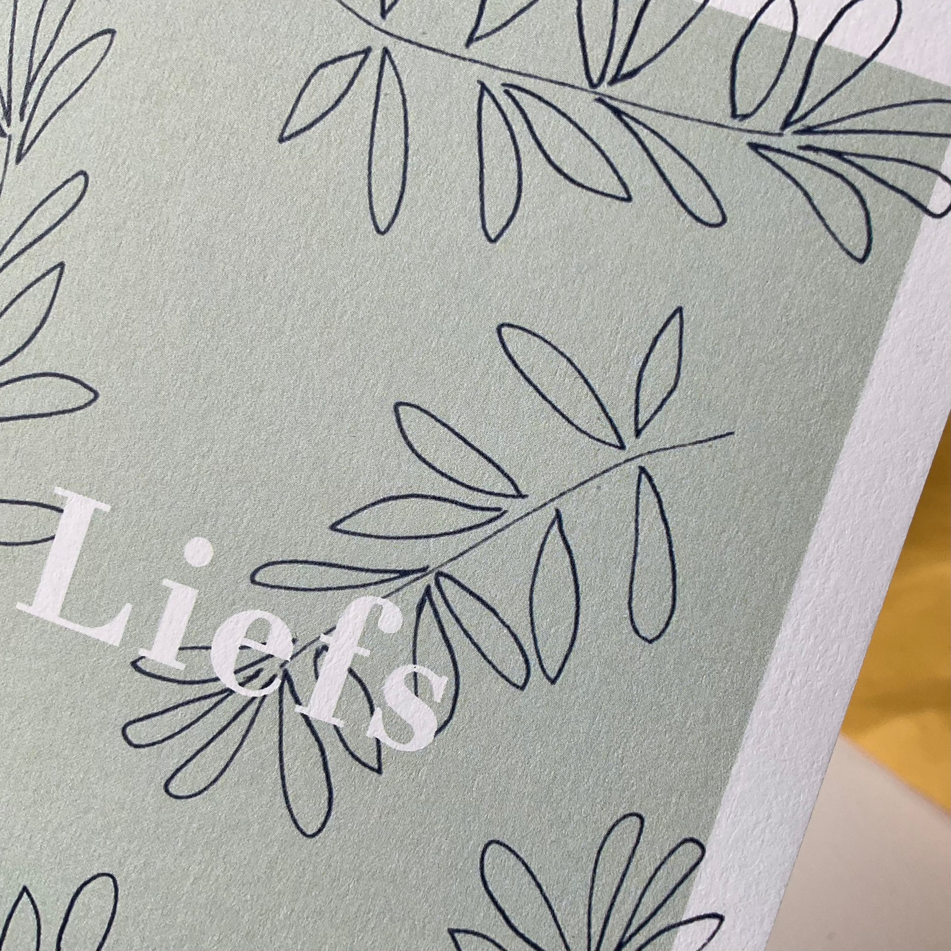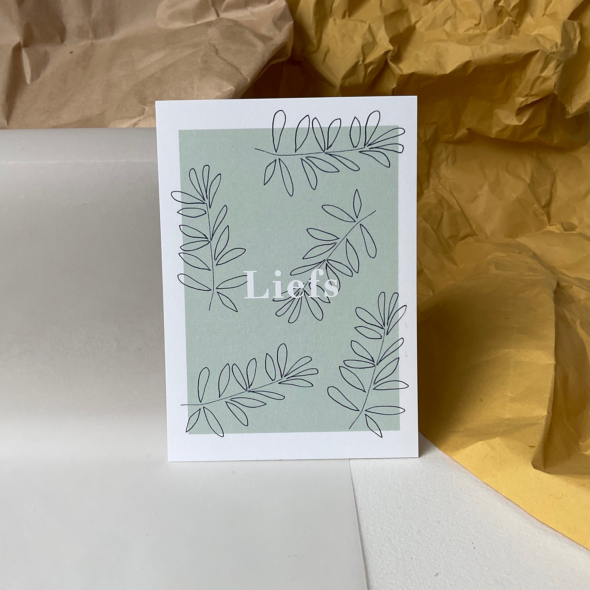 Een postkaart met kraft enveloppe. Liefs. Toch een mooi woord? Het is zo iets dat ik de mensen vaak wens. 🫶